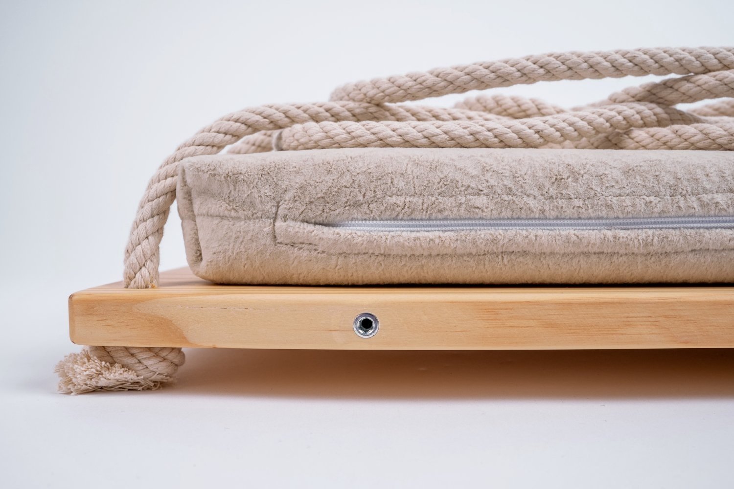 Este columpio esta fabricado con materiales de muy buena calidad, es precioso y muy facil de instalar. A mi gato le encanta!!!!!!